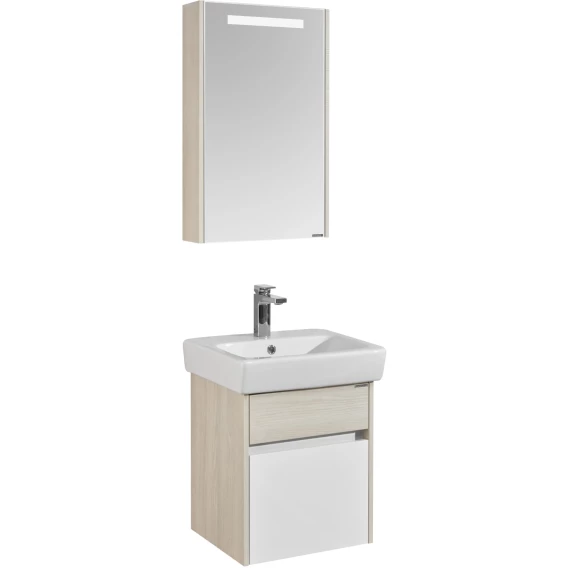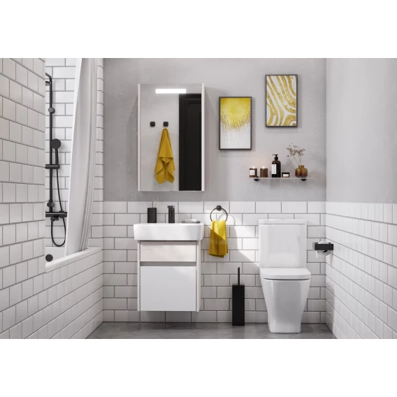 Механизм доводчика, Ящик, Полочка, Подсветка, Зеркало-шкаф, Выключатель, Тумба под раковину, Раковина