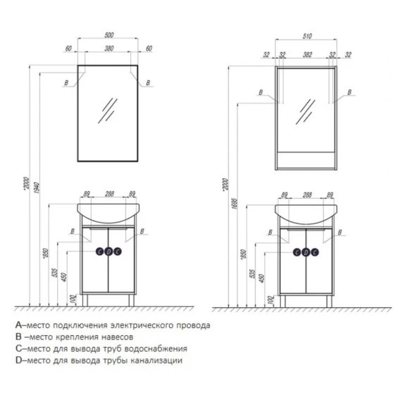 Механизм доводчика, Полочка, Ручки, Зеркало-шкаф, Ножки, Тумба под раковину, Раковина