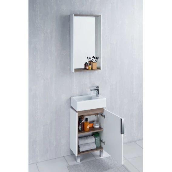 Механизм доводчика, Полочка, Подсветка, Зеркало-шкаф, Ручка, Тумба под раковину, Раковина