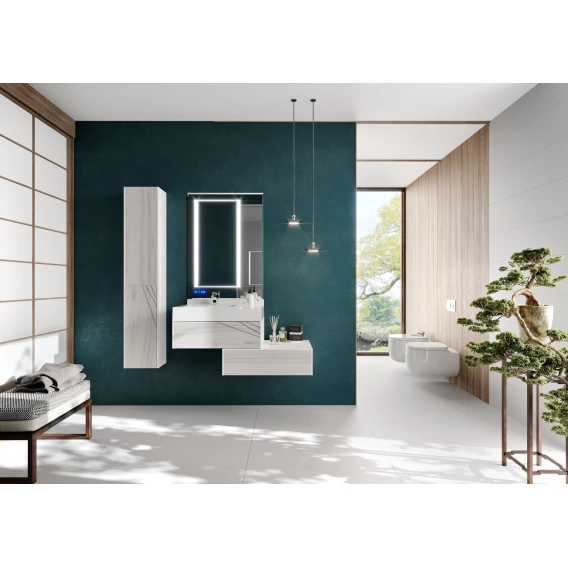 Ящик, LED подсветка, Сенсорный выключатель, Система "Push-to-open", Функция анти-пар, Электронные часы, Зеркало, Тумба под раковину, Раковина