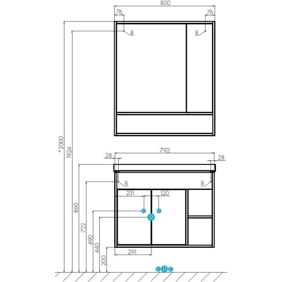 Механизм доводчика, Полочка, Ручки, Зеркало-шкаф, Тумба под раковину, Раковина