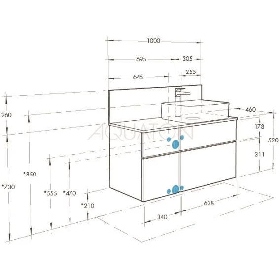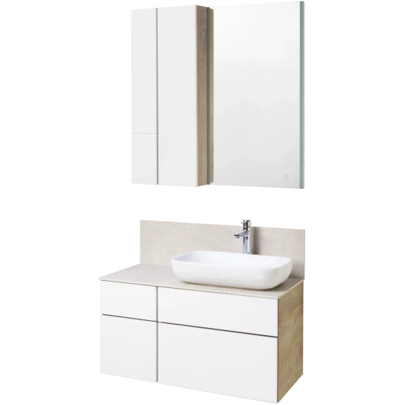Механизм доводчика, Ящик, Подсветка, Зеркало-шкаф, Сенсорный выключатель, Система "Push-to-open", Столешница, Тумба под раковину, Раковина
