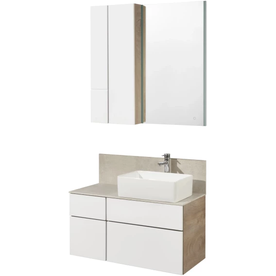 Механизм доводчика, Ящик, Подсветка, Зеркало-шкаф, Сенсорный выключатель, Система "Push-to-open", Столешница, Тумба под раковину, Раковина