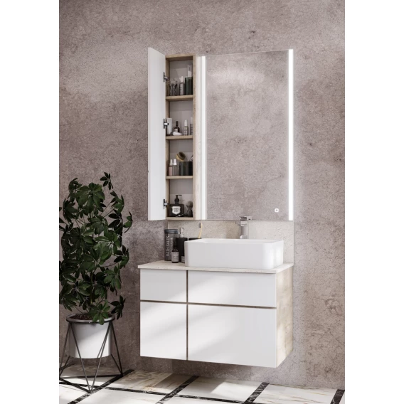 Механизм доводчика, Ящик, Подсветка, Зеркало-шкаф, Сенсорный выключатель, Система "Push-to-open", Столешница, Тумба под раковину, Раковина