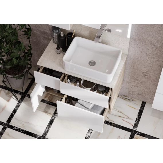 Механизм доводчика, Ящик, Подсветка, Зеркало-шкаф, Сенсорный выключатель, Система "Push-to-open", Столешница, Тумба под раковину, Раковина