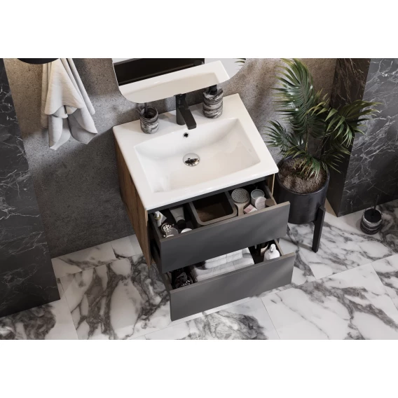 Механизм доводчика, Ящик, Полочка, Зеркало-шкаф, Система "Push-to-open", Тумба под раковину, Раковина
