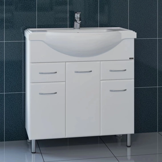 Тумба с раковиной белый глянец 80,5 см Санта Эльбрус 201115 + CLASSIC80