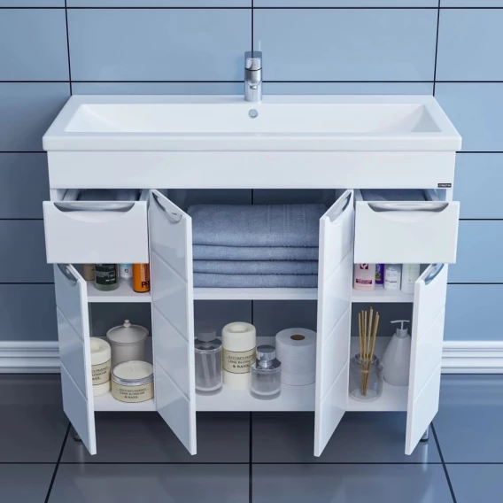 Тумба с раковиной белый глянец 101 см Санта Родос 206016 + FOCTEP100
