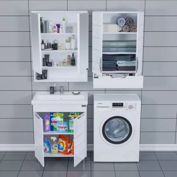 Механизм доводчика, Полочка, Ручки, Зеркало-шкаф, Ножки, Тумба под раковину, Раковина