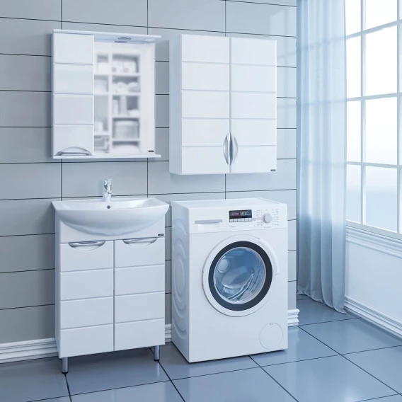 Механизм доводчика, Полочка, Ручки, Зеркало-шкаф, Выключатель, Розетка, Светильник, Ножки, Тумба под раковину, Раковина