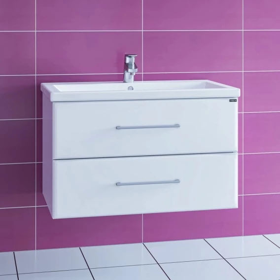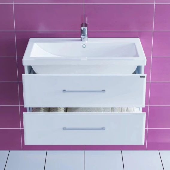 Тумба с раковиной белый глянец 81 см Санта Дублин 207005 + FOCTEP80