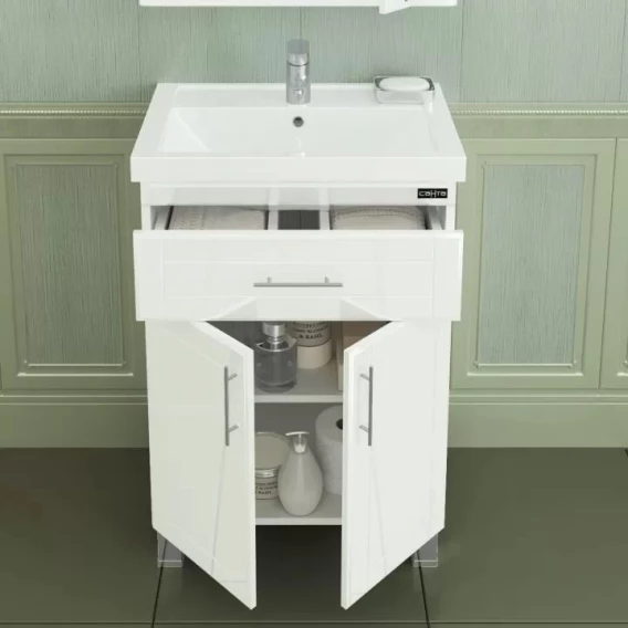 Механизм доводчика, Ящик, Полочка, Ручки, Зеркало-шкаф, Ножки, Тумба под раковину, Раковина
