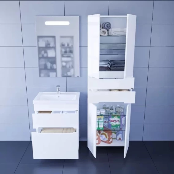 Механизм доводчика, Ящик, LED подсветка, Ножки, Зеркало, Тумба под раковину, Раковина