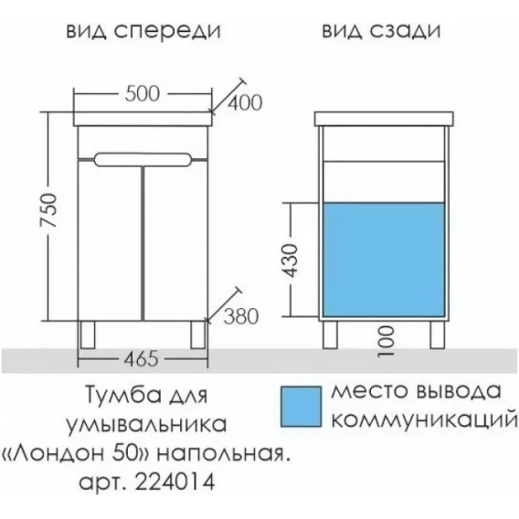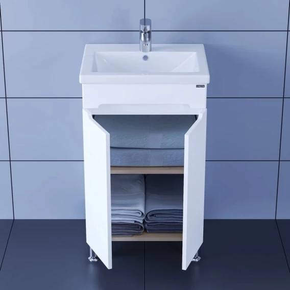 Тумба с раковиной белый глянец 50 см Санта Лондон 224014 + FOCTEP50