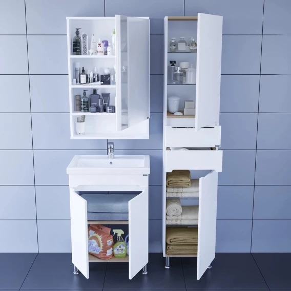 Механизм доводчика, Полочка, Зеркало-шкаф, Ножки, Тумба под раковину, Раковина