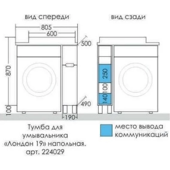 Механизм доводчика, Полочка, LED подсветка, Кронштейн, Ножки, Зеркало, Тумба под раковину, Раковина