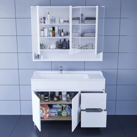 Механизм доводчика, Ящик, Полочка, Зеркало-шкаф, Ножки, Тумба под раковину, Раковина