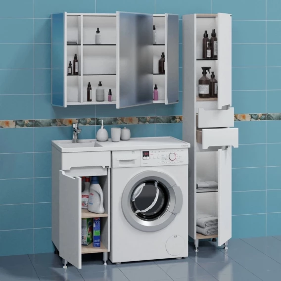 Механизм доводчика, Полочка, Зеркало-шкаф, Кронштейн, Ножки, Тумба под раковину, Раковина