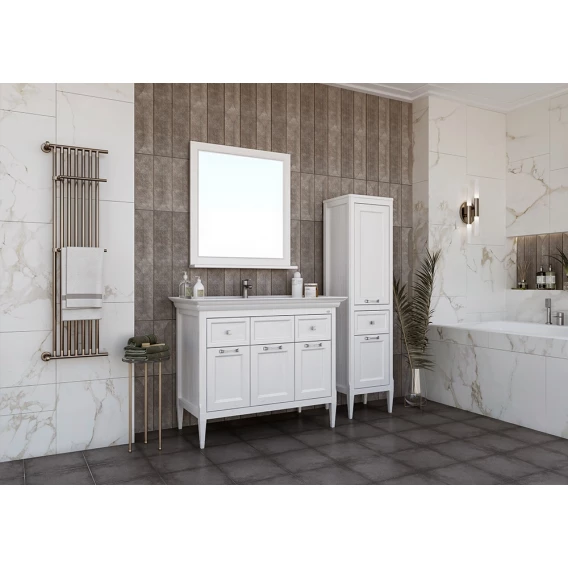 Тумба с раковиной белый серебряная патина 106 см ASB-Woodline Гранда