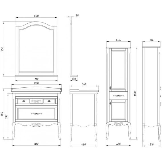 Механизм доводчика, Ящик, Ручки, Ножки, Тумба под раковину, Раковина