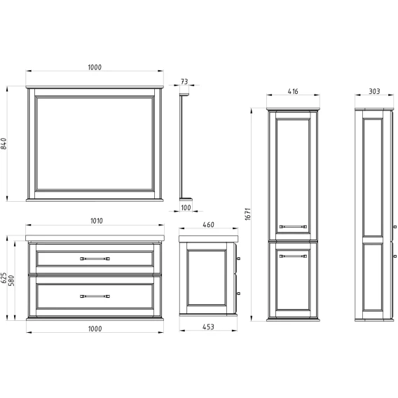 Механизм доводчика, Ящик, Полочка, Ручки, Зеркало, Тумба под раковину, Раковина