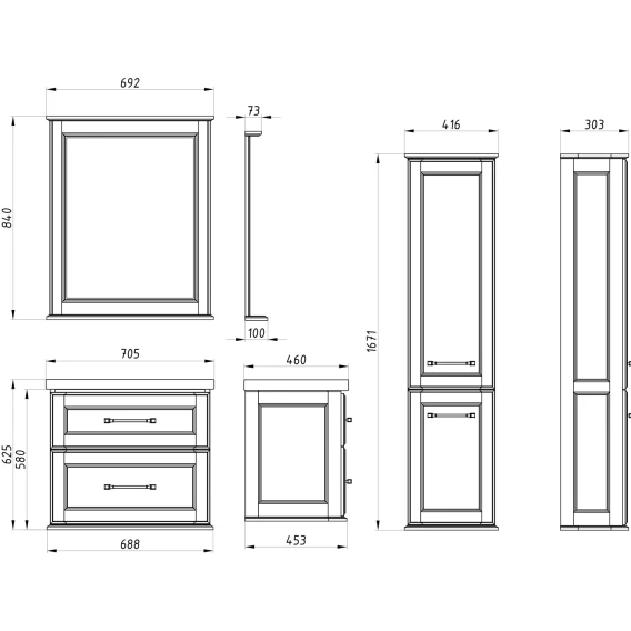Механизм доводчика, Ящик, Полочка, Ручки, Зеркало, Тумба под раковину, Раковина