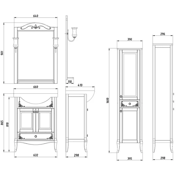 Тумба белый серебряная патина 63,2 см ASB-Woodline Салерно 9695 БС