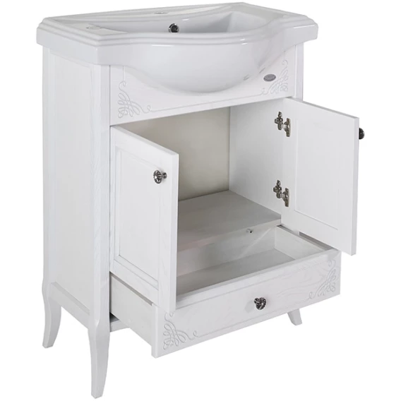 Тумба с раковиной белый серебряная патина 66 см ASB-Woodline Салерно