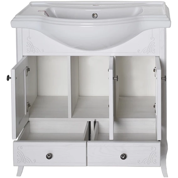 Тумба с раковиной белый серебряная патина 81 см ASB-Woodline Салерно