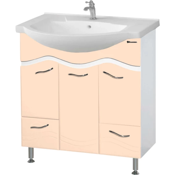 Тумба с раковиной бежевый глянец/белый глянец 76 см Bellezza Мари 4632912000227 + 4620008197371