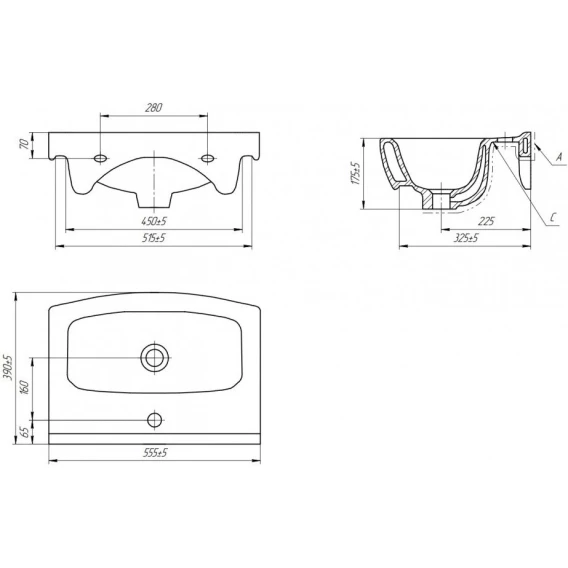 Тумба с раковиной белый глянец 55,5 см Bellezza Анкона 4639608190019 + 4690311045010
