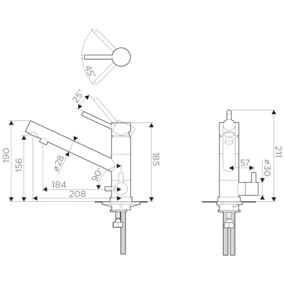 Длина излива 20.8 см