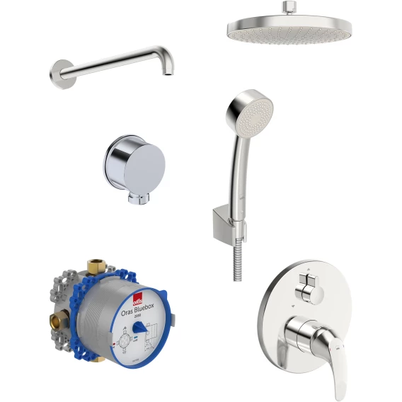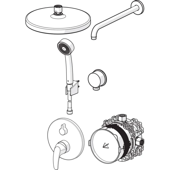 Душевой шланг, Душевая лейка, Держатель для душевой лейки, Подключение для душевого шланга, Верхний душ, Скрытая монтажная часть, Смеситель, Кронштейн