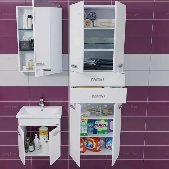 Механизм доводчика, Полочка, Ручки, Зеркало-шкаф, Тумба под раковину, Раковина