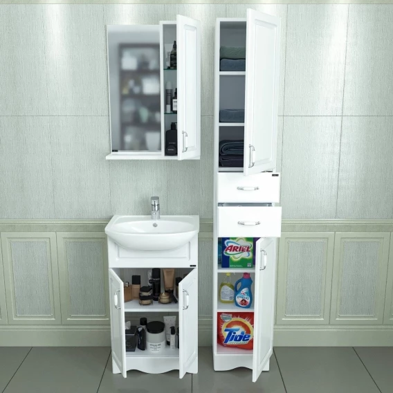 Механизм доводчика, Полочка, Ручки, Зеркало-шкаф, Тумба под раковину, Раковина