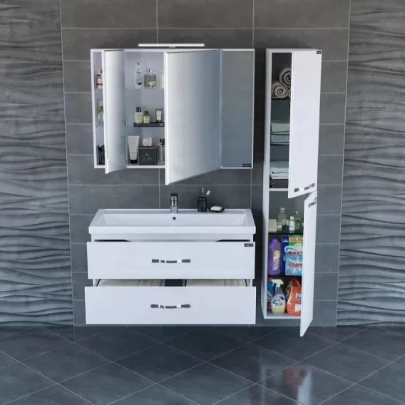 Механизм доводчика, Ящик, Полочка, Ручки, Зеркало-шкаф, Выключатель, Розетка, Светильник, Тумба под раковину, Раковина