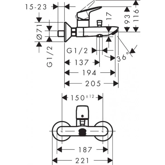 Состав комплекта: Смеситель для ванны Hansgrohe Logis 71400000