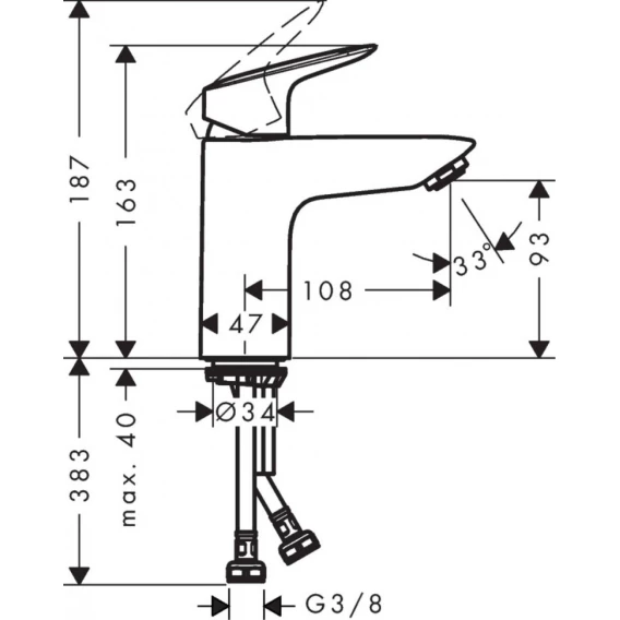 Смеситель для раковины без донного клапана Hansgrohe Logis 71101000