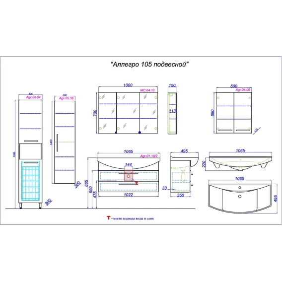 Тумба с раковиной белый глянец 106,5 см Aqwella Allegro Agr.01.10/2 + 4620008197340