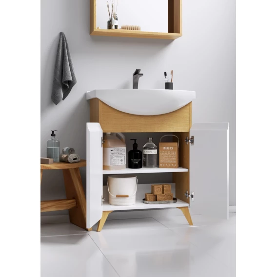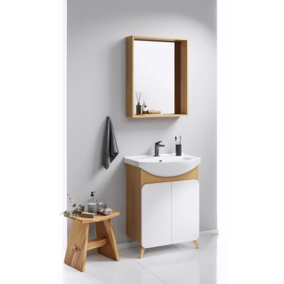 Комплект мебели дуб золотой/белый матовый 66 см Aqwella Basic BAS0106DZ + 4620008192475 + BAS0207DZ