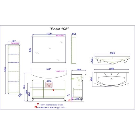 Механизм доводчика, Полочка, Ножки, Тумба под раковину, Раковина