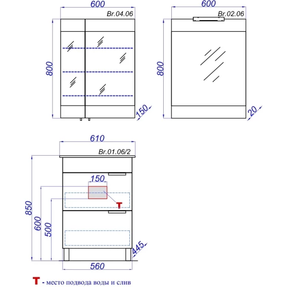 Механизм доводчика, Ящик, Ручки, Ножки, Тумба под раковину, Раковина