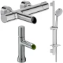 Крепление, Аэратор, Гибкая подводка, Металлическая розетка, Эксцентрики, Душевой шланг, Душевая лейка, Держатель для душевой лейки, Смеситель, Штанга душевая, Термостат