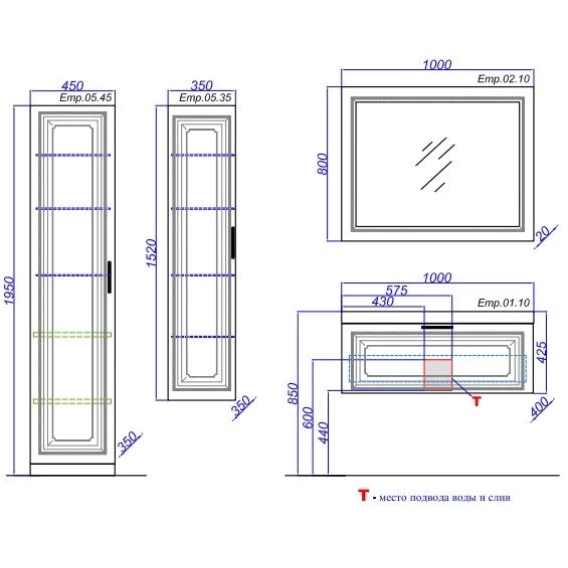 Механизм доводчика, Ящик, Ручки, Зеркало, Тумба под раковину, Раковина