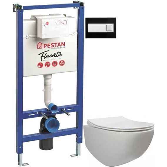 Комплект подвесной унитаз 40006661B + 40006661S + система инсталляции 40006356 + 40006366 Pestan Fluenta SET40006661DB