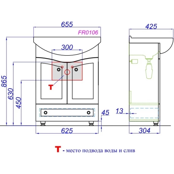 Комплект мебели белый глянец 65,5 см Aqwella Franchesca FR0106 + 4640021062296 + FR0406