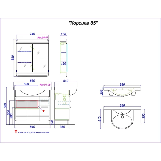 Механизм доводчика, Ящик, Полочка, Ручки, Зеркало-шкаф, Ножки, Тумба под раковину, Раковина