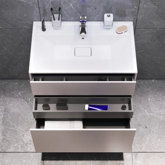 Механизм доводчика, Ящик, LED подсветка, Сенсорный выключатель, Система "Push-to-open", Зеркало, Тумба под раковину, Раковина