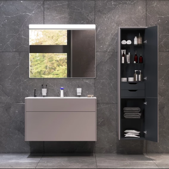Механизм доводчика, Ящик, LED подсветка, Сенсорный выключатель, Система "Push-to-open", Зеркало, Тумба под раковину, Раковина