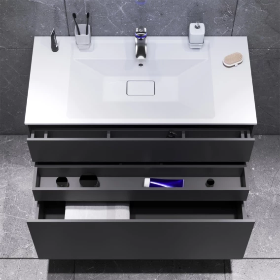 Механизм доводчика, Ящик, LED подсветка, Сенсорный выключатель, Система "Push-to-open", Зеркало, Тумба под раковину, Раковина